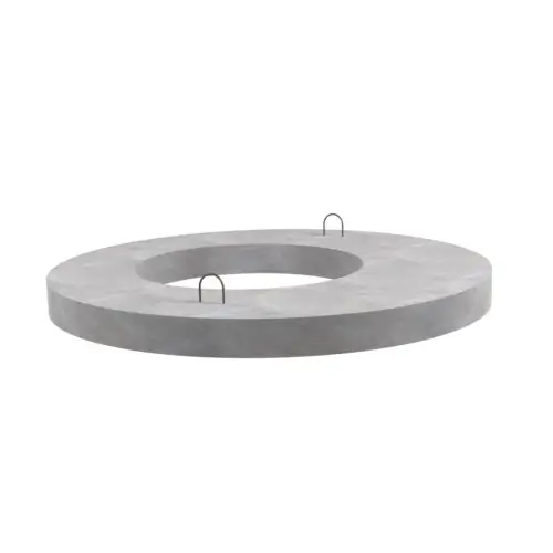Бетонная крышка колодца изготовлена из железобетона - материала, который сочетает в себе прочность стали и долговечность бетона. Это обеспечивает высокую надежность и долговечность изделия в эксплуатации.